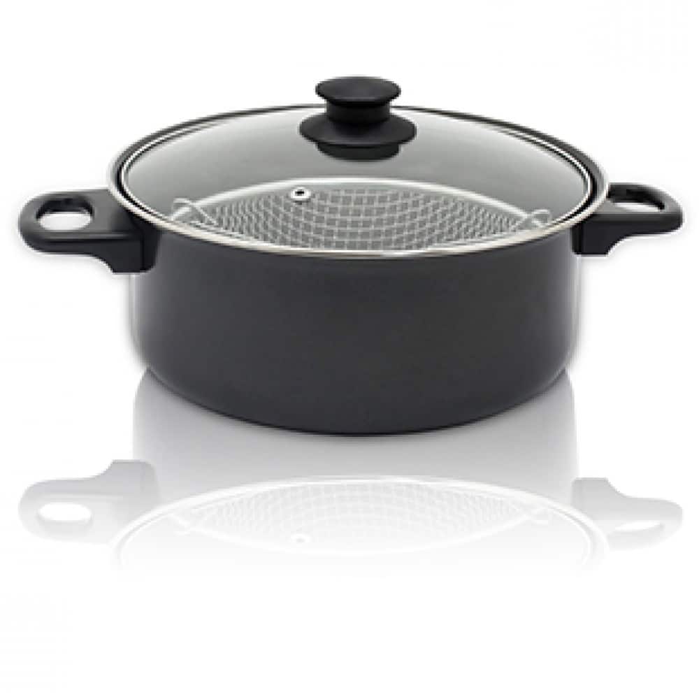 Το δοχείο Esperansa ES 1213 F είναι κατασκευασμένο από υψηλής ποιότητας αλουμίνιο και με αντικολλητική επίστρωση. Διαθέτει καλάθι τηγανίσματος από ανθρακούχο χάλυβα και δικό του γυάλινο καπάκι.