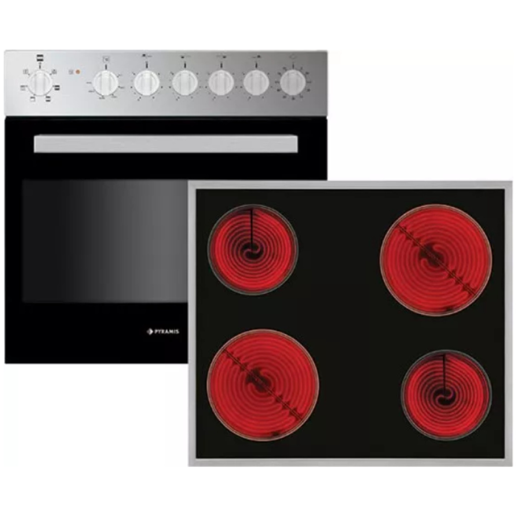 PYRAMIS 60 ΚΠ145 Κουζίνα Εντοιχιζόμενη με Εστίες Κεραμικές INOX ΕΩΣ 12 ΔΟΣΕΙΣ