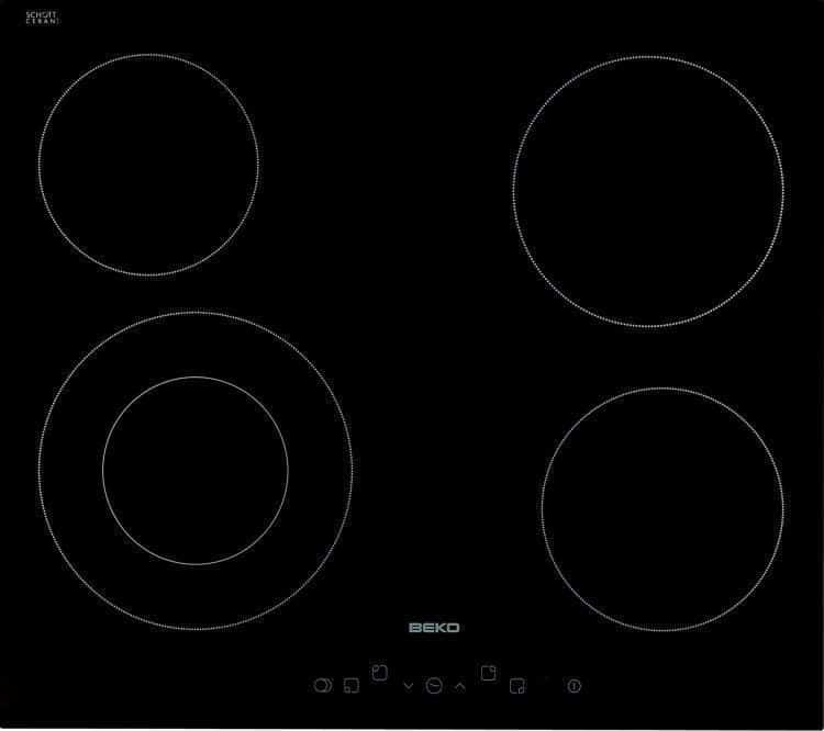 • Γυάλινη κεραμική εστία Beko HIC 64402 E χωρίς πλαίσιο με 4 ζώνες μαγειρέματος (εκ των οποίων ένα διπλό).