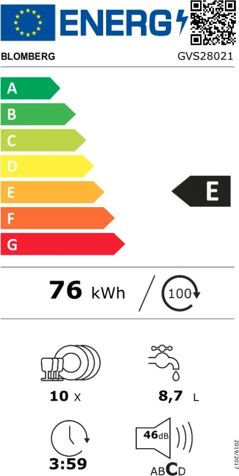 BLOMBERG GVS28021 Πλήρως Εντοιχιζόμενο Πλυντήριο Πιάτων για 10 Σερβίτσια Π44.8xY81.8εκ. Λευκό ΕΩΣ 12 ΔΟΣΕΙΣ