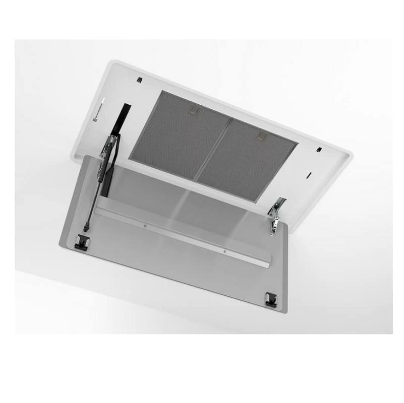 Ο απορροφητήρας της εταιρείας Bosch, ενεργειακής κλάσης A, κρέμεται από την οροφή, αντί να στηρίζεται στον τοίχο. Θεωρείται αθόρυβος, καθώς στη μέγιστη λειτουργία δεν ξεπερνά τα 60 decibel (συζήτηση μεταξύ 2 ανθρώπων σε φυσιολογικό τόνο).Η μέγιστη απορροφητική ισχύς είναι 458 m³/h, η οποία μπορεί να καλύψει ικανοποιητικά χώρους έως και 16 τετραγωνικά μέτρα (με ύψος 2,85 μέτρα). Επιπλέον διαθέτει και λειτουργία αυξημένης έντασης στα 933 m³/h για σύντομο χρονικό διάστημα, ιδιαίτερα χρήσιμη για την αντιμετώπιση οσμών κατά το τηγάνισμα και το ψήσιμο στο grill.Ο αέρας που τραβάει ο απορροφητήρας είτε εξάγεται μέσω σωλήνα είτε ανακυκλώνεται στον απορροφητήρα. Για τη λειτουργία με εξαγωγή αέρα χρειάζεται να εγκατασταθεί σωλήνας που θα βγάζει τον αέρα έξω από την κουζίνα. Δέχεται μεταλλικά φίλτρα, τα οποία αφαιρούνται και πλένονται στο πλυντήριο πιάτων ή στο χέρι. Επιπλέον δεν χρειάζονται συχνή αντικατάσταση.