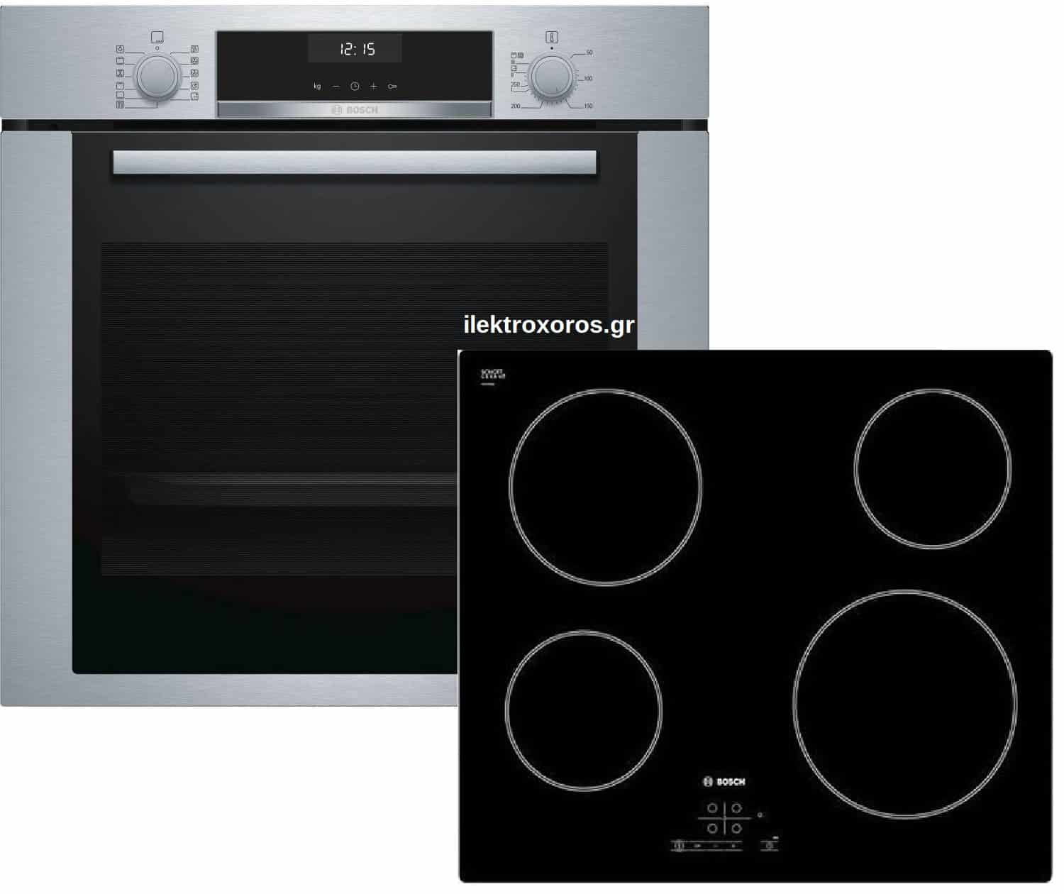 BOSCH HBA357BSO + PKE611B17E Κουζίνα Εντοιχιζόμενη με Κεραμικές Εστίες ΕΩΣ 12 ΔΟΣΕΙΣ