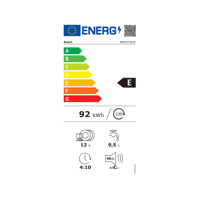 Σύμφωνα με τη νέα ενεργειακή κλάση ανήκει στη κλάση E. Η νέα κλίμακα ενεργειακής απόδοσης αποτελείται από τις κλάσεις A εώς G. Οι συσκευές με κλάση Α (πράσινες) είναι αυτές με τη μικρότερη κατανάλωση ενέργειας, ενώ οι συσκευές με κλάση G (κόκκινες) είναι αυτές με τη μεγαλύτερη κατανάλωση.