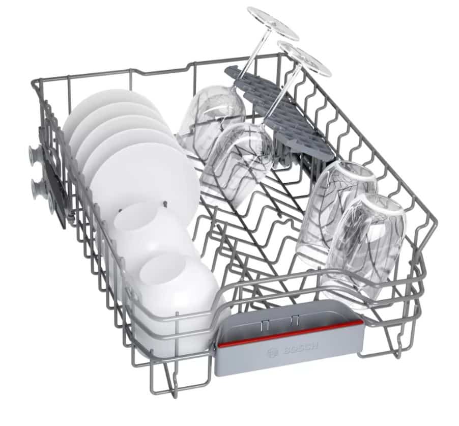 - Αναδιπλούμενη μπάρα στήριξης ποτηριών στο κάτω καλάθι