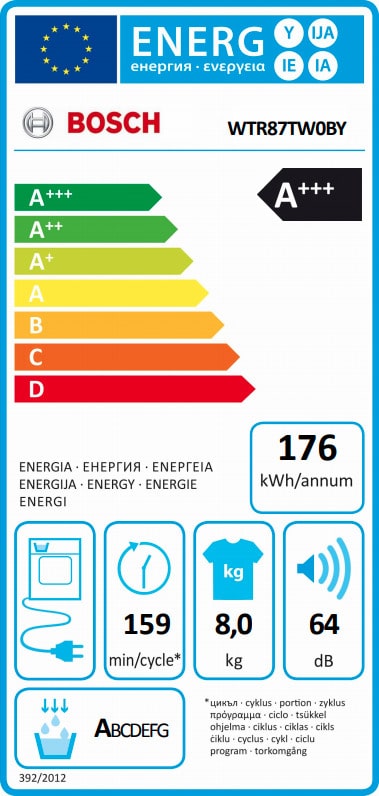 BOSCH WTR87TW0BY Στεγνωτήριο Ρούχων 8kg A+++ ΕΩΣ 12 ΔΟΣΕΙΣ