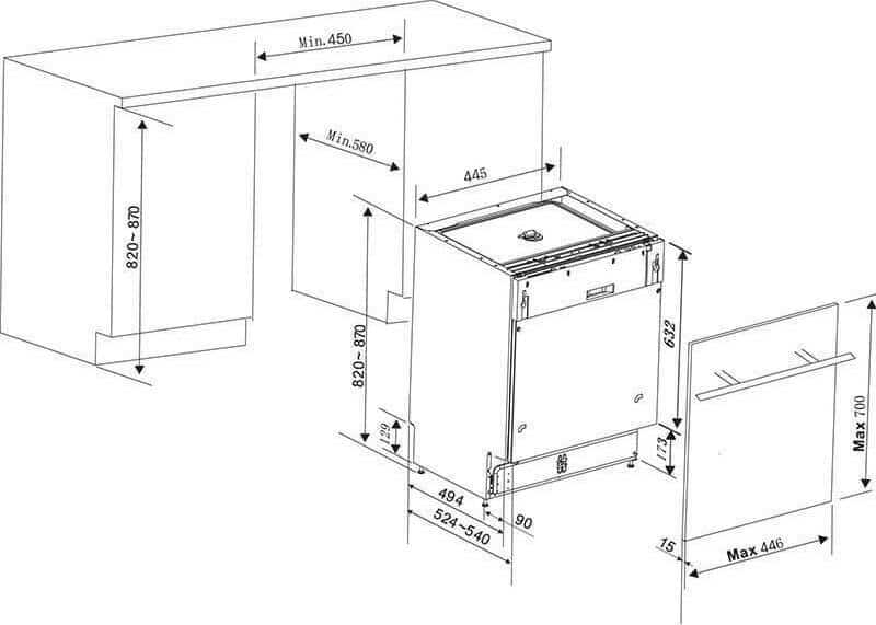 • Εντοιχιζόμενο πλυντήριο πιάτων – Πλήρους εντοιχισμού