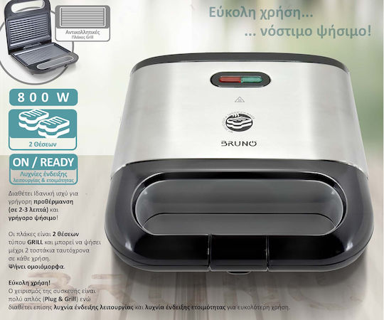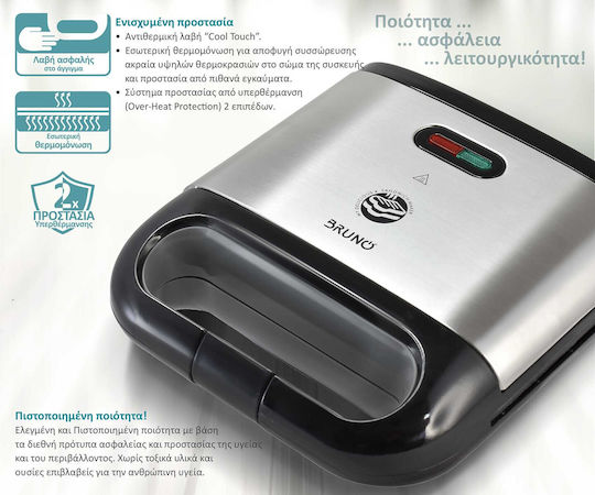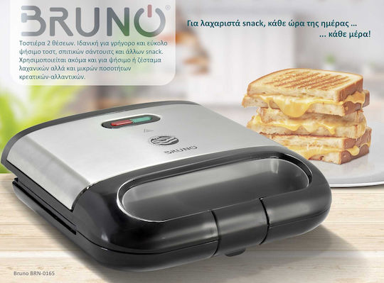 Η τοστιέρα BRUNO BRN-0165 είναι ιδανική για γρήγορο και εύκολο ψήσιμο τοστ, σπιτικών σάντουιτς και άλλων snack. Χρησιμοποιείται και για ψήσιμο ή ζέσταμα λαχανικών και μικρών ποσοτήτων κρεατικών-αλλαντικών. Είναι απαραίτητη σε κάθε νοικοκυριό αλλά και σε επαγγελματικούς χώρους.