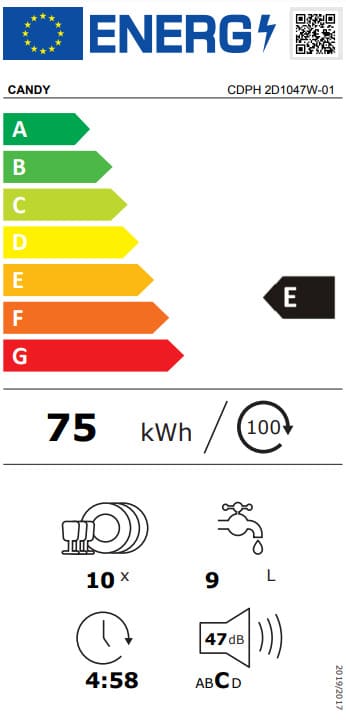 Σύμφωνα με τη νέα ενεργειακή κλάση ανήκει στην κλάση E. Η νέα κλίμακα ενεργειακής απόδοσης αποτελείται από τις κλάσεις A έως G. Οι συσκευές με κλάση Α (πράσινες) είναι αυτές με τη μικρότερη κατανάλωση ενέργειας, ενώ οι συσκευές με κλάση G (κόκκινες) είναι αυτές με τη μεγαλύτερη κατανάλωση.