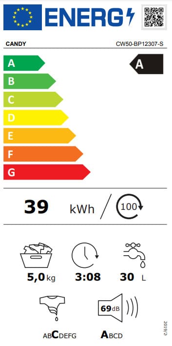 Αυτό το πλυντήριο ρούχων με Ενεργειακή Απόδοση Α, συμμορφώνεται με τη Νέα Ενεργειακή Ετικέτα και συγκριτικά με την κατηγορία G, μειώνει την κατανάλωση τουλάχιστον κατά 51%, εξοικονομώντας ενέργεια, χρήματα και λειτουργεί με απόλυτο σεβασμό προς το περιβάλλον.
