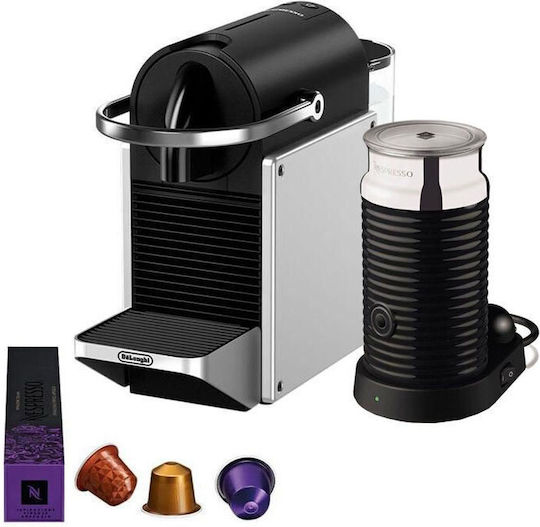 De’Longhi Pixie Καφετιέρα για Κάψουλες Nespresso Πίεσης 19bar με Αφρογαλιέρα Silver EN127.SAE