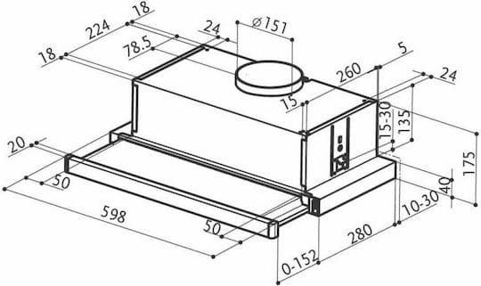 - Απορροφητική Ισχύς (Max): 310m³/h