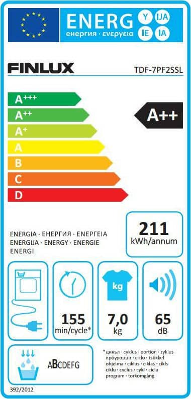 FINLUX TDF-7PF2SSL Στεγνωτήριο Ρούχων 7kg A++ με Αντλία Θερμότητας ΕΩΣ 12 ΔΟΣΕΙΣ