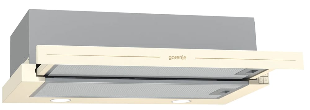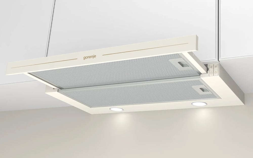 Ο απορροφητήρας της εταιρείας Gorenje τοποθετείται σε ντουλάπι και σύρεται μόνο το μέρος του απορροφητήρα που περιέχει τα φίλτρα.