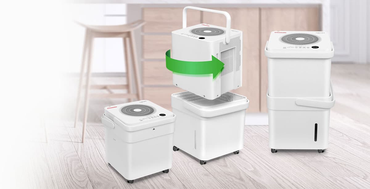 Έξυπνος σχεδιασμός με ασύγκριτη ευελιξία που προσαρμόζεται σε κάθε σου ανάγκη! Χάρη στον σχεδιασμό Pick up & turn, σηκώνεις, γυρίζεις και τοποθετείς τον αφυγραντήρα στην ειδική υποδοχή, απολαμβάνοντας το μεγάλο δοχείο νερού 12 λίτρων. Ταυτόχρονα, μπορείς να εξοικονομείς χώρο τόσο όταν τον αποθηκεύεις μέσα στο δοχείο νερού όσο και κατά τη διάρκεια της συνεχούς αποστράγγισης.