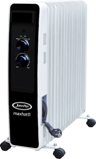 Ηλεκτρικό καλοριφέρ λαδιού Juro-Pro Maxhot 11 2500 watt με 3 ρυθμίσεις θέρμανσης , ρυθμιζόμενο θερμοστάτη , αυτόματη διακοπή λειτουργίας σε περίπτωση υπερθέρμανσης και διακόπτης λειτουργίας με ενδεικτική λυχνία.