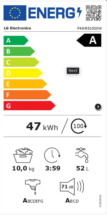 LG F4WR510S0W Πλυντήριο ρούχων 10kg 1400 rpm ΕΩΣ 12 ΔΟΣΕΙΣ