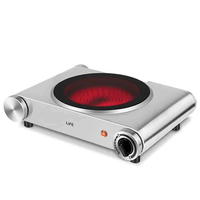 Η επιτραπέζια εστία Single της εταιρείας Life, διαθέτει μία εστία και ισχύ 1200 Watt. Είναι κεραμική με γυάλινη λεία επιφάνεια, η οποία όταν θερμαίνεται αλλάζει σε κόκκινο χρώμα. Θερμαίνεται πολύ γρήγορα και ομοιόμορφα χάρις στις θερμαντικές αντιστάσεις που βρίσκονται κάτω από την επιφάνειά της. Επίσης ο καθαρισμός της είναι πιο εύκολος, σε σχέση με τις κλασικές εμαγιέ εστίες.