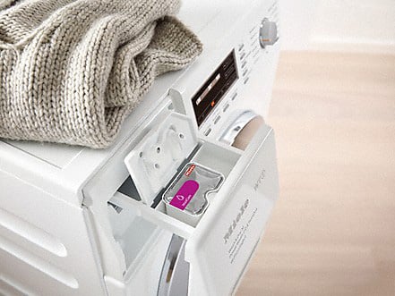 Η Miele σου προσφέρει δοσομετρικές κάψουλες για ειδικές εφαρμογές. Τοποθετούνται πολύ εύκολα στη θήκη για το μαλακτικό. Η συσκευή παρέχει τα περιεχόμενα την καλύτερη χρονική στιγμή του κύκλου πλύσης, εντελώς αυτόματα. Η επιλογή σου: 6 ειδικά απορρυπαντικά (Sport, Down, Outdoor, WoolCare, SilkCare, αδιαβροχοποιητικό), 3 μαλακτικά (Aqua, Nature, Cocoon) και ένα ενισχυτικό για τους επίμονους λεκέδες.