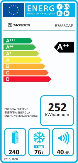 - Ενεργειακή κλάση (σύμφωνα με την Οδηγία 2010/1060) = A++ (σε μια κλίμακα από Α+++ έως D)