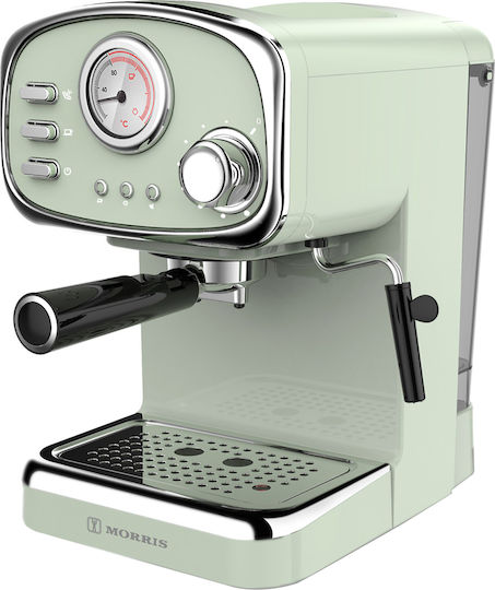 Με την Vintage αισθητική της σειράς Retro από την Morris, η μηχανή espresso είναι ιδανική για τους λάτρεις του παλιού με τις καινοτoμίες του σήμερα. Όταν το παλιό συναντάει το καινούργιο… Με αναλογικός δείκτης θερμοκρασίας νερού και ατμού και τελειώματα υψηλής αισθητικής από ανοξείδωτο ατσάλι.