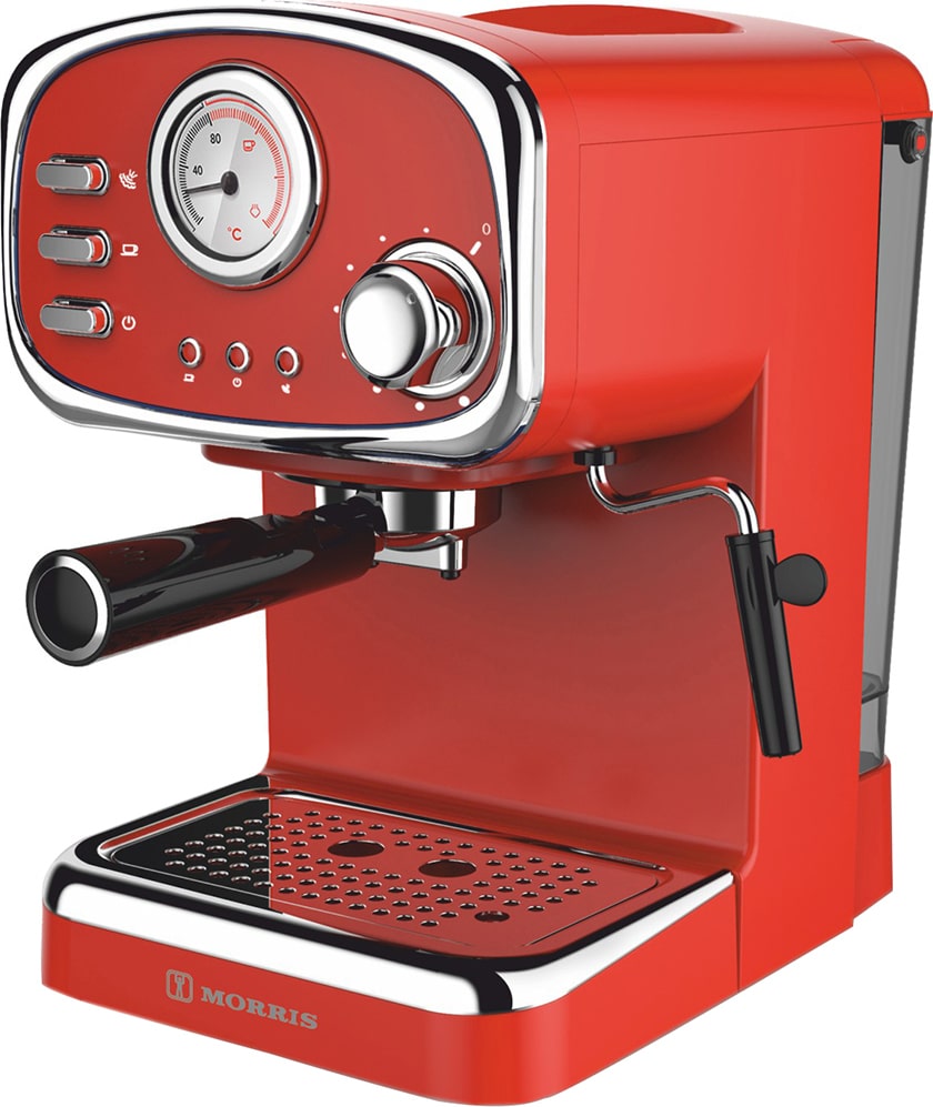 MORRIS R20808EMR Μηχανή Espresso Retro Red 1100W Πίεσης 20bar ΕΩΣ 12 ΔΟΣΕΙΣ