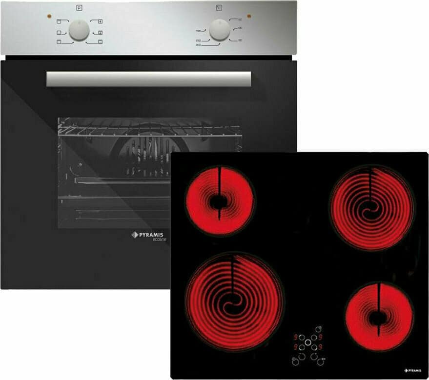 Εντοιχιζόμενο σετ της Pyramis που περιέχει τον φούρνο και τις εστίες. Ο φούρνος λειτουργεί ανεξάρτητα από τις εστίες και μπορεί να τοποθετηθεί σε διαφορετικό σημείο από αυτές. Περιέχει μόνο τους διακόπτες για το χειρισμό του φούρνου, ενώ οι εστίες που τον συνοδεύουν έχουν δικούς τους διακόπτες. Έχει χωρητικότητα 66 λίτρα, η οποία θεωρείται ικανοποιητική για μια μέση οικογένεια. Διαθέτει κεραμικές εστίες που έχουν λεία και γυάλινη επιφάνεια η οποία όταν θερμαίνεται αλλάζει σε κόκκινο χρώμα. Το πλεονέκτημα των κεραμικών εστιών είναι ότι θερμαίνονται πολύ γρήγορα και καθαρίζονται πιο εύκολα από τις εμαγιέ (κλασικές) εστίες, αλλά ο καθαρισμός τους θέλει προσοχή καθώς χαράζονται σχετικά εύκολα και χρειάζεται ειδικό απορρυπαντικό.