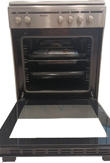 Η κουζίνα διαθέτει ανοξείδωτες πλαϊνές σχάρες για εύκολη τοποθέτηση ταψιών, ενώ η πόρτα με διπλό κρύσταλλο διατηρεί τη θερμότητα μέσα και την ασφάλεια ψηλά. Οι εξωτερικοί διακόπτες προσφέρουν άμεσο έλεγχο, ενώ το καπάκι εστιών προστατεύει την επιφάνεια όταν δεν χρησιμοποιείται.
