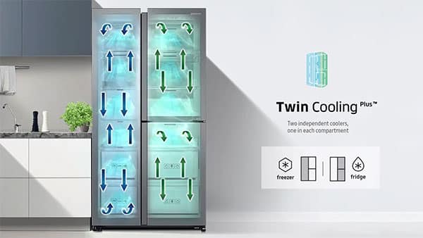 Βεβαιώσου ότι το φαγητό παραμένει πιο υγρό και πιο φρέσκο για δύο φορές περισσότερο. Το Twin Cooling Plus βελτιστοποιεί τη θερμοκρασία και την υγρασία στο ψυγείο και τον καταψύκτη με ανεξάρτητη ψύξη. Διατηρεί καλύτερα τα τρόφιμα και προστατεύει τη γεύση τους αποτρέποντας την ανάμιξη των οσμών.