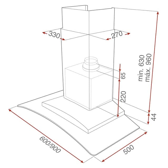 • Καμινάδα τοίχου 60cm με κρυστάλλινο πτερύγιο