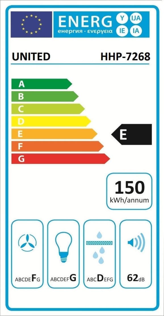 UNITED HHP7268 Απορροφητήρας Συρόμενος Inox ΕΩΣ 12 ΔΟΣΕΙΣ