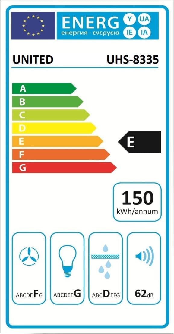 UNITED UHS-8335 Απορροφητήρας Inox ΕΩΣ 12 ΔΟΣΕΙΣ